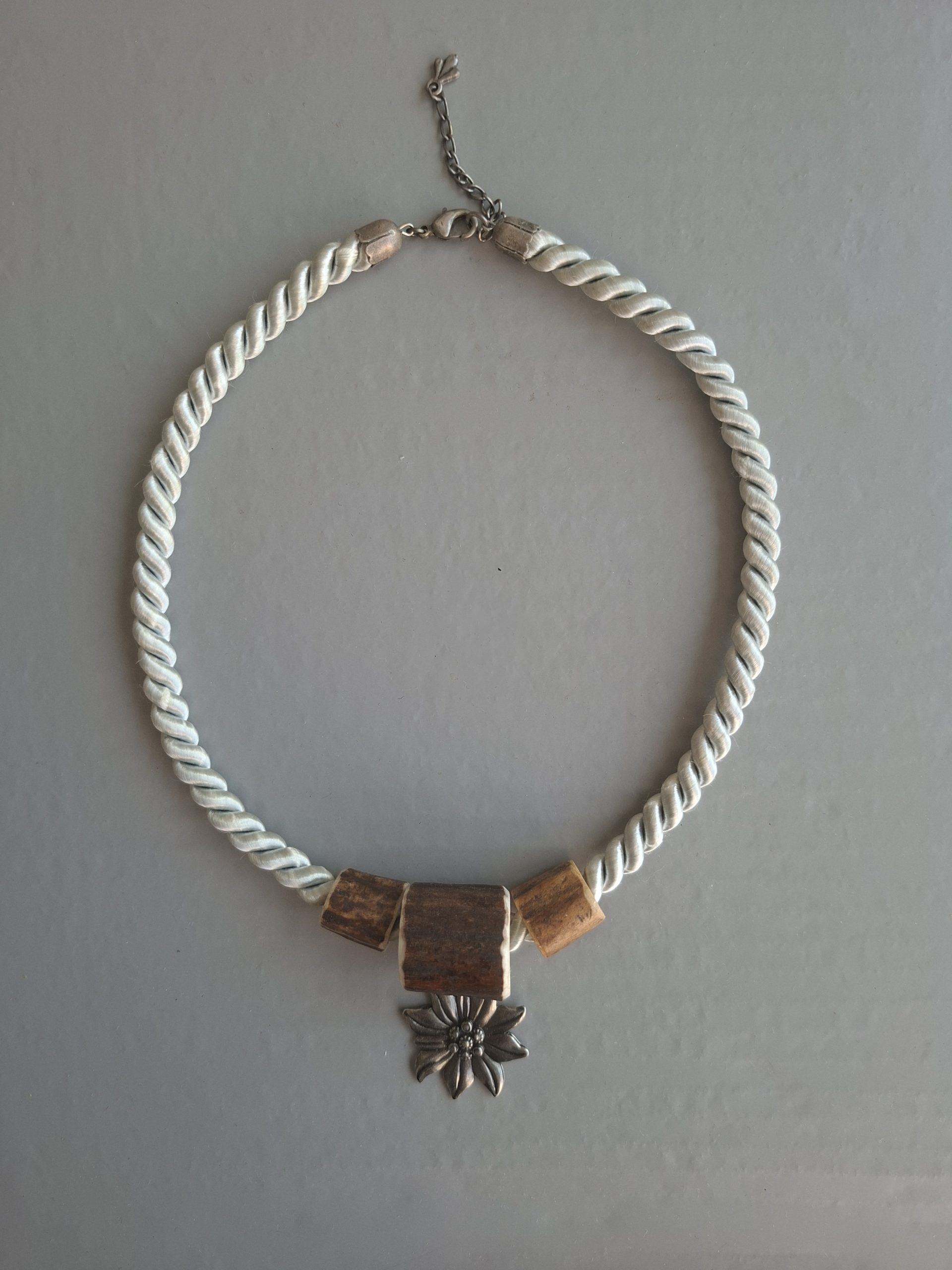 Geschmackvolle Trachten-Halskette mit echten Hirschgeweih-Perlen und dezentem Edelweiß-Anhänger